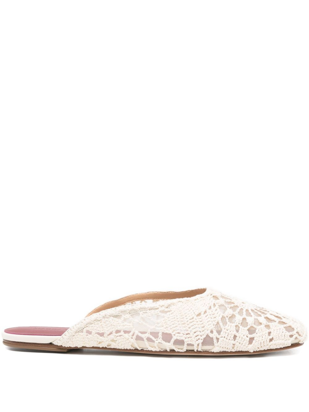 crochet-lace mules Highlights - Cream - Crochet lace - Slip-on style - Flat sole - Rounded toe Made in Italy Composition Sole: Calf Leather 100% Outer: Fabric 100% Lining: Calf Leather 100%, Fabric 100%