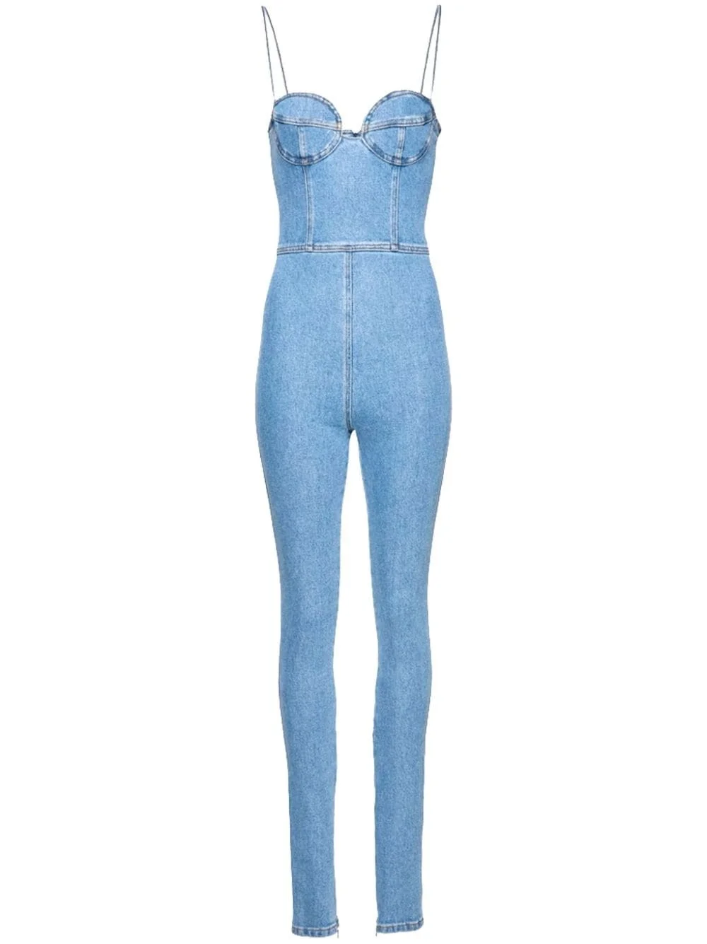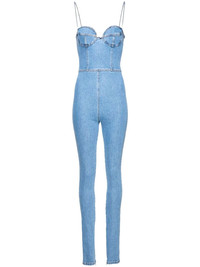 denim bustier jumpsuit Magda Butrym offers an eye-catching denim design with this jumpsuit. It arrives in a classic light wash and is defined by its bustier-style neckline and thin shoulder straps. Highlights - Light blue - Stretch-cotton - Thin shoulder straps - Bustier-style neckline - Rear zip fastening - Slim cut Imported Composition Cotton 99%, Elastane 1% SIZE & FIT Measurement INSIDE LEG 33.85 in(86 cm) HIPS 37 in(94 cm) Washing instructions Read Manufacturer Guidelines