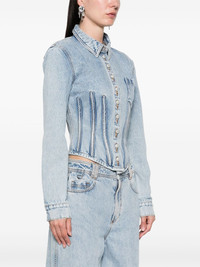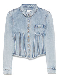 denim jacket Highlights - Cerulean blue - Front button fastening - Buttoned cuffs - Chest patch pocket - Box-pleat design Imported Composition Cotton 100% SIZE & FIT Model measurements Height 5 ft 10 in(1.78 m) Bust/Chest 33.46 in(85 cm) Hips 36.22 in(92 cm) Waist 23.22 in(59 cm) FittingInformation Designed for a close fit throughout Sturdy and hard-wearing, this denim piece offers no stretch