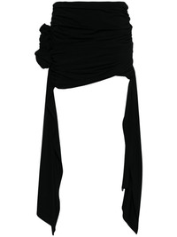 draped asymmetric mini skirt Magda Butrym puts a characteristically playful spin on this miniskirt with a draped construction and their seasonal double sash that cascades to the ankles. Rose applique detailing sits at the side, recalling a brand signature. Highlights - Black - Stretch-design - Draped design - Rose applique - Asymmetric hem - Sash detail - Slip-on style Imported Composition Viscose 85%, Elastane 15% SIZE & FIT Model measurements Height 5 ft 11 in(1.8 m) Bust/Chest 32.67 in(83 cm) Hips 36.22 in(92 cm) Waist 24.4 in(62 cm) FittingInformation This mini-length skirt is intended to be worn just below the waist Made from a midweight stretch fabric, this piece offers elasticity and flexibility when worn This piece fits true to size – take your usual size