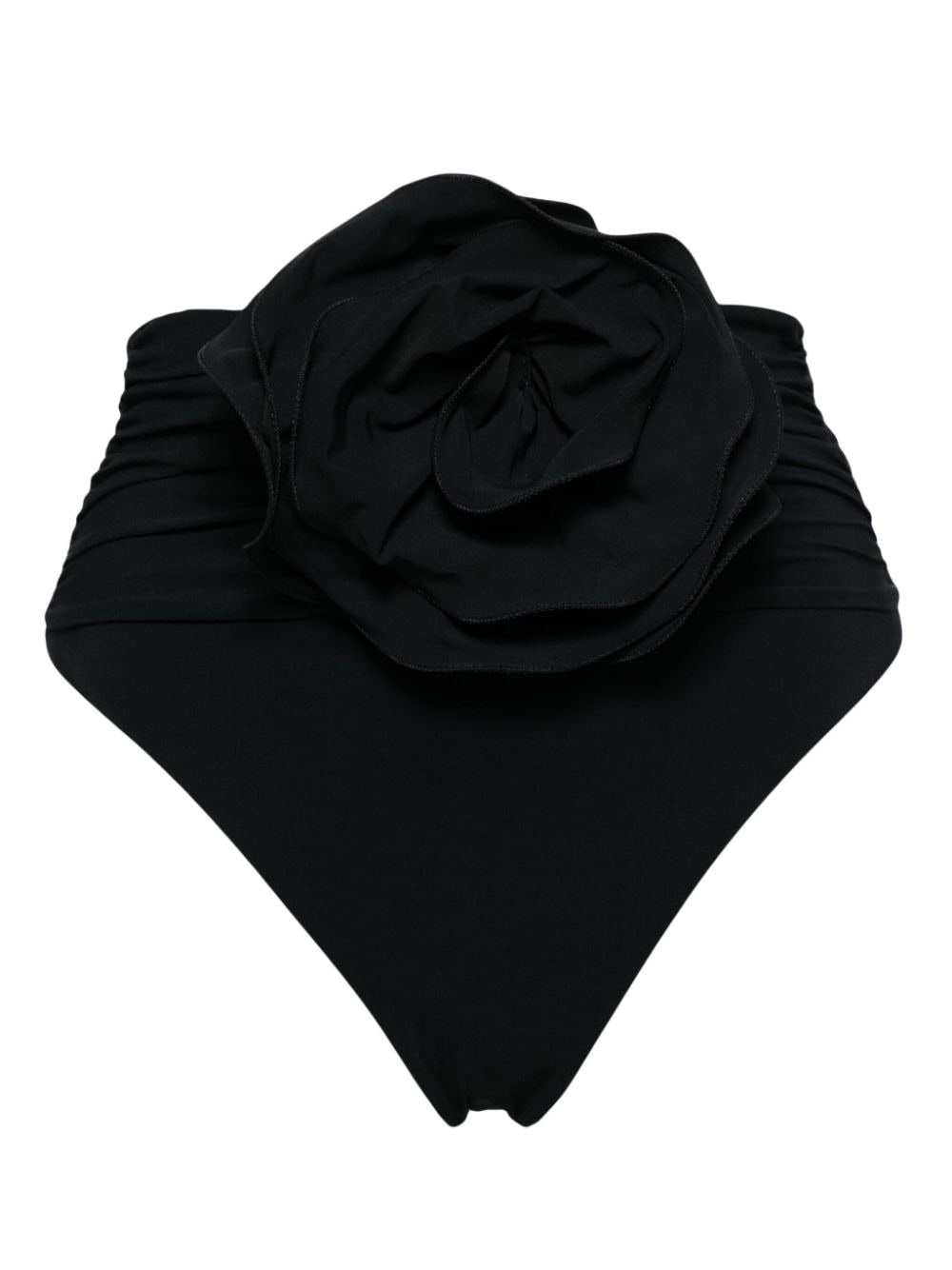 High-waisted flower appliqué swim bottom in black