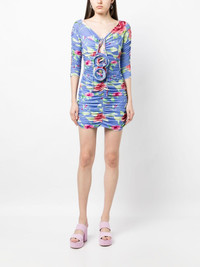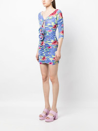 floral-applique ruched minidress This Magda Butrym's minidress features ruching down the centre for a textured finish. Two roses lay at the front to add a signature Magda detail. Highlights - Cornflower blue/multicolour - Stretch-design - Ruched detailing - Floral applique - Front tie fastening - Concealed rear zip fastening - Three-quarter length sleeves - Thigh-length Imported Composition Lining: Silk 100% Body: Viscose 92%, Elastane 8% SIZE & FIT Model measurements Height 5 ft 10 in(1.78 m) Bust/Chest 32.67 in(83 cm) Hips 33.46 in(85 cm) Waist 23.22 in(59 cm) FittingInformation Designed for a close fit throughout Slightly short in length; consider your own measurements Made from a midweight stretch fabric, this piece offers elasticity and flexibility when worn This piece fits true to size – take your usual size