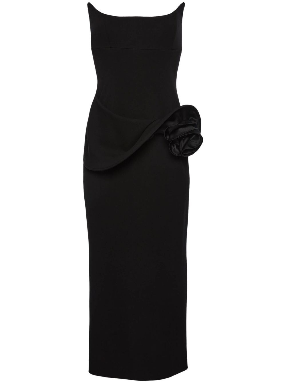 floral-applique bustier midi dress Highlights - Black - Concealed rear zip fastening - Rear slit - Bustier-style neckline - Strapless Imported Composition Viscose 100% SIZE & FIT Measurement CHEST 34.64 in(88 cm) LENGTH 45.27 in(115 cm) WAIST 29.92 in(76 cm) Washing instructions Read Manufacturer Guidelines