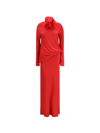 floral-applique maxi dress Highlights - Red - Flower detail - Long sleeves - Draped detail - Floor-length Imported Composition Viscose 81%, Silk 15%, Elastane 4% Washing instructions Read Manufacturer Guidelines