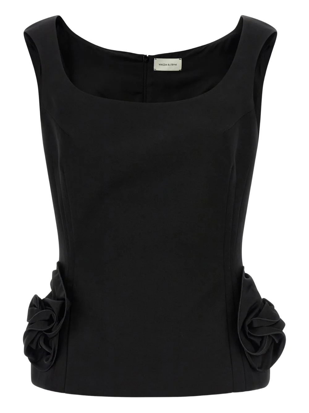 floral-ruffle sleeveless top Highlights - Black - Floral ruffle - Round neck - Back zip fastening Imported Composition Cotton 51%, Silk 49% Washing instructions Read Manufacturer Guidelines