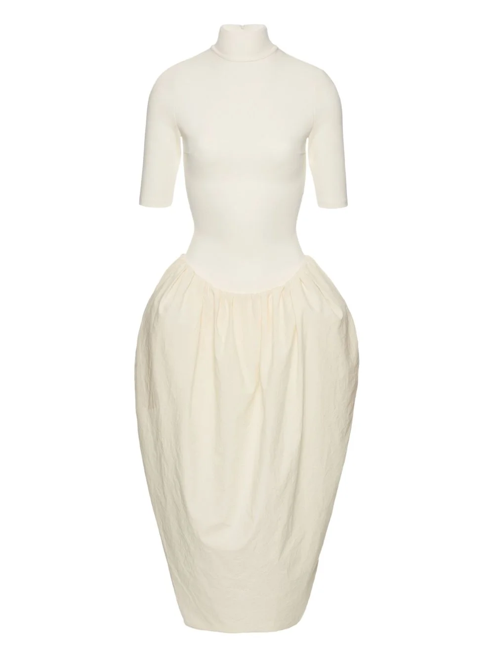 High-neck puff skirt midi dress in cream
