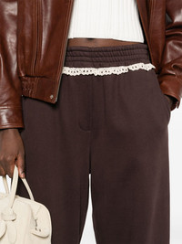 lace-detail cotton track pants Highlights - Brown - Elasticated waistband - Lace detail - Cotton construction Imported Composition Cotton 100% SIZE & FIT Model measurements Height 5 ft 11 in(1.8 m) Bust/Chest 32.67 in(83 cm) Hips 36.22 in(92 cm) Waist 24.4 in(62 cm) Washing instructions Dry Clean Only