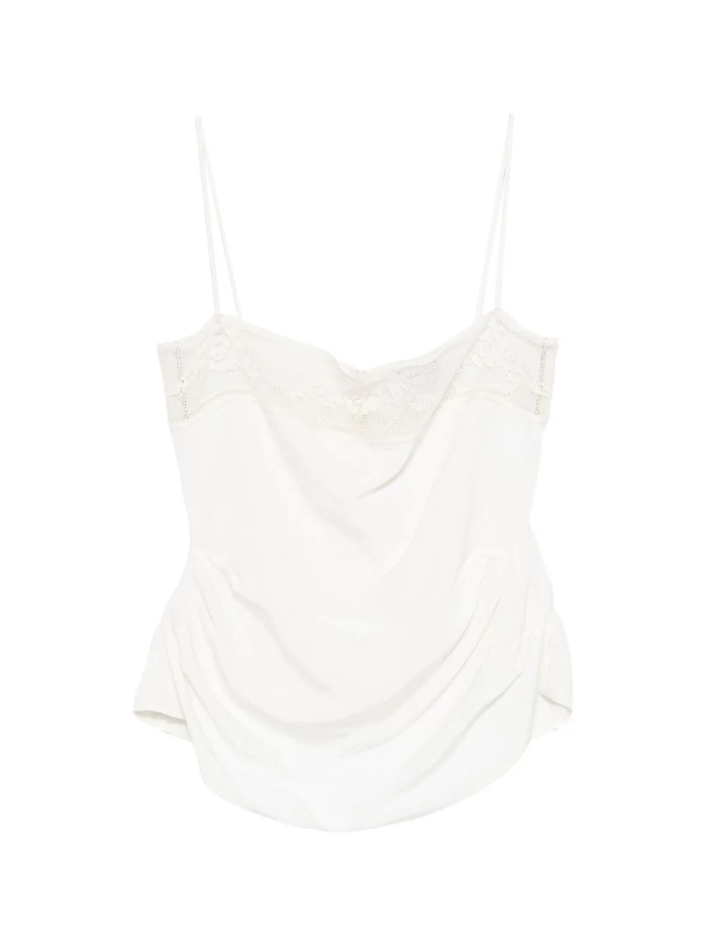 lace ruched top Highlights - Beige - Silk - Lace trim - Thin straps - Ruched detail - Round hem Imported Composition Silk 100% Washing instructions Dry Clean Only