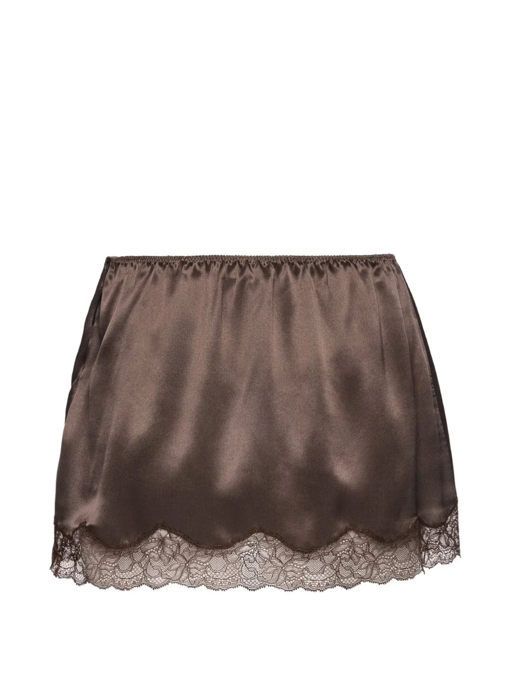 Mini slip skirt with lace-trimmed hem in brown