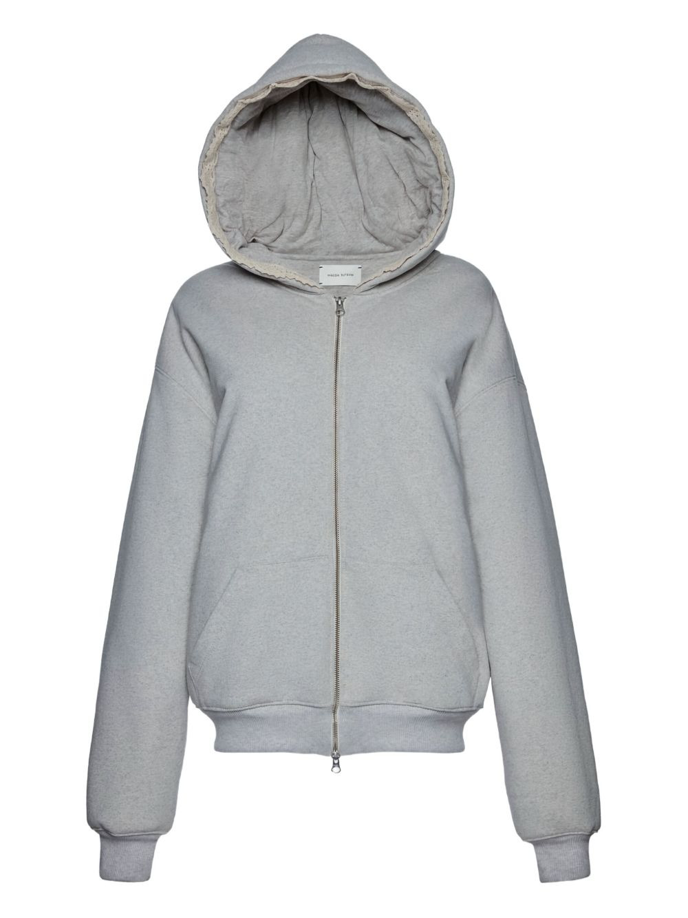 lace-trimmed hoodie Highlights - Grey - Lace trim - Hooded - Front zip fastening - Front pouch pockets - Ribbed trims Imported Composition Cotton 50%, Recycled Cotton 50% Washing instructions Read Manufacturer Guidelines