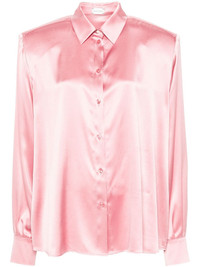 long-sleeve silk shirt Highlights - Rose pink - Stretch-silk - Classic collar - Long sleeves - Buttoned cuffs - Front button fastening - Straight hem Imported Composition Silk 93%, Elastane 7% SIZE & FIT Model measurements Height 5 ft 11 in(1.8 m) Bust/Chest 31.49 in(80 cm) Hips 36.22 in(92 cm) Waist 25.59 in(65 cm) FittingInformation Designed to be unstructured, offering a loose fit throughout The internal shoulder pads offer a structured shape Made from a lightweight stretch fabric, this piece offers elasticity and flexibility when worn This piece fits true to size – take your usual size