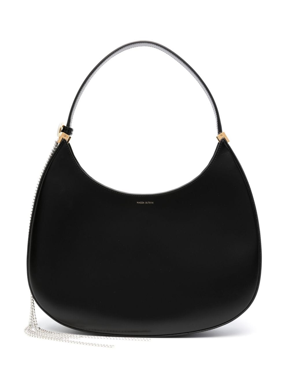 medium Vesna leather shoulder bag Magda Butrym's signature Vesna bag is defined by its tasselled crystal brooch which can be detached and worn as an accessory. This medium iteration is crafted in smooth black leather to a crescent silhouette with a fixed top handle. Highlights - Black - Calf leather - Logo stamp to the front - Brooch detail - Single shoulder strap - Magnetic fastening - Internal slip pocket - Suede lining - Gold-tone hardware Made in Italy Composition Outer: Calf Leather 100% SIZE & FIT Model measurements Height 5 ft 10 in(1.78 m) Bust/Chest 33.46 in(85 cm) Hips 36.22 in(92 cm) Waist 23.22 in(59 cm) Measurement DEPTH 1.96 in(5 cm) HANDLE 7.87 in(20 cm) HEIGHT 7.87 in(20 cm) WIDTH 14.56 in(37 cm)