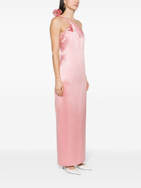 one-shoulder silk maxi dress Highlights - Light pink - Silk - Satin finish - Floral applique - One-shoulder - Asymmetric neck - Sleeveless - Rear slit - Straight hem - Ankle-length Imported Composition Silk 100% SIZE & FIT Measurement HIPS 36.22 in(92 cm) LENGTH 50 in(127 cm) WAIST 27.55 in(70 cm) BUST 33.85 in(86 cm) Washing instructions Dry Clean Only