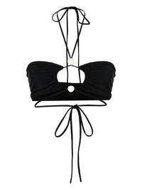 pearl-detailed bandeau bikini top Highlights - Black - Stretch-design - Bandeau style - Pearl detailing - Cut-out detailing - Gathered detailing - Halterneck tie fastening Made in Italy Composition Polyamide 72%, Spandex/Elastane 28%