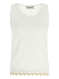 ribbed crochet-trimmed top Highlights - White - Ribbed texture - Round neckline - Sleeveless - Crochet trim Imported Composition Cotton 95%, Elastane 5% Washing instructions Read Manufacturer Guidelines
