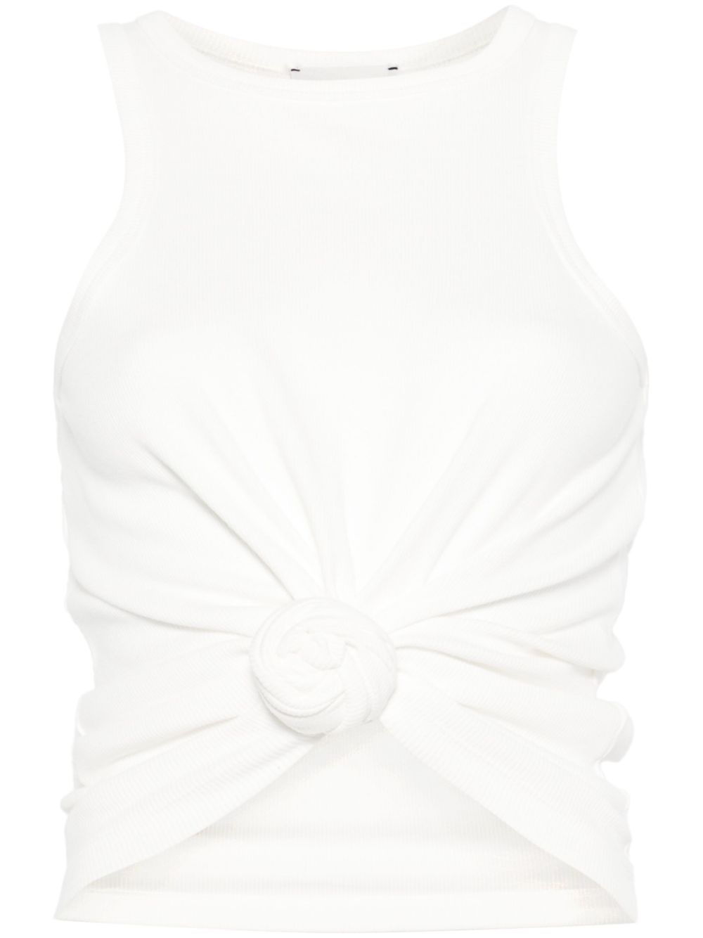 Knotted ribbed tank top in cream