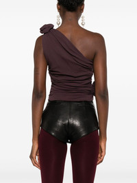 rose-embellished one-shoulder top Highlights - Purple - One-shoulder design - Rose embellishments - Draped detail - Stretch design Imported Composition Viscose 95%, Elastane 5% SIZE & FIT Model measurements Height 5 ft 10 in(1.78 m) Bust/Chest 31.49 in(80 cm) Hips 37 in(94 cm) Waist 23.62 in(60 cm) FittingInformation Designed for a slim fit that sits just away from the body offering a close yet comfortable fit Made from a midweight stretch fabric, this piece offers elasticity and flexibility when worn Washing instructions Dry Clean Only
