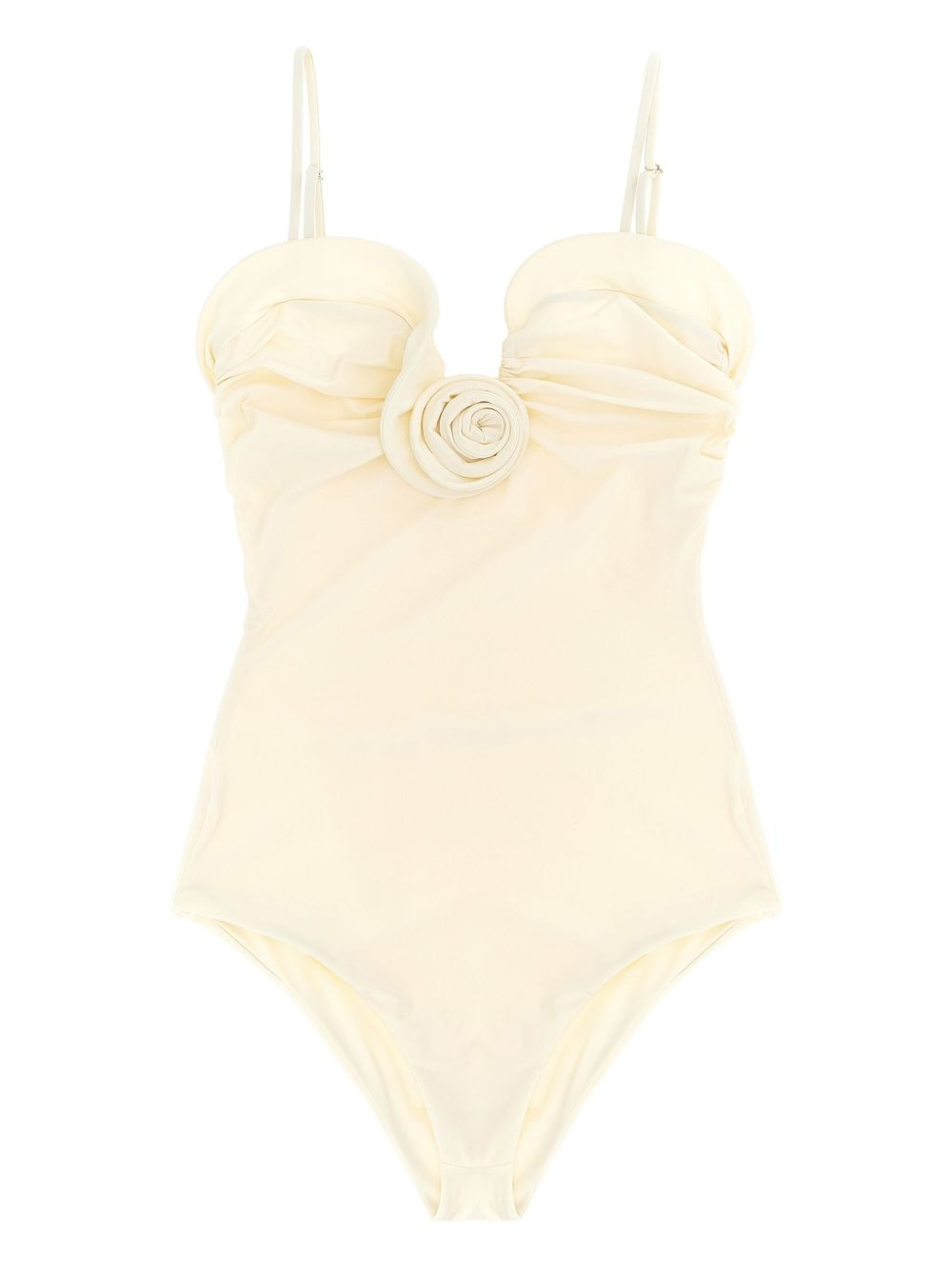rose-embellished swimsuit Highlights - White - Rose embellishment - Sweetheart neckline - Adjustable straps - Removable straps - Be mindful to try on swimwear over your own garments. Made in Italy Composition Polyamide 75%, Elastane 25% Washing instructions Read Manufacturer Guidelines