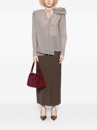 Classic silk flower blouse in brown