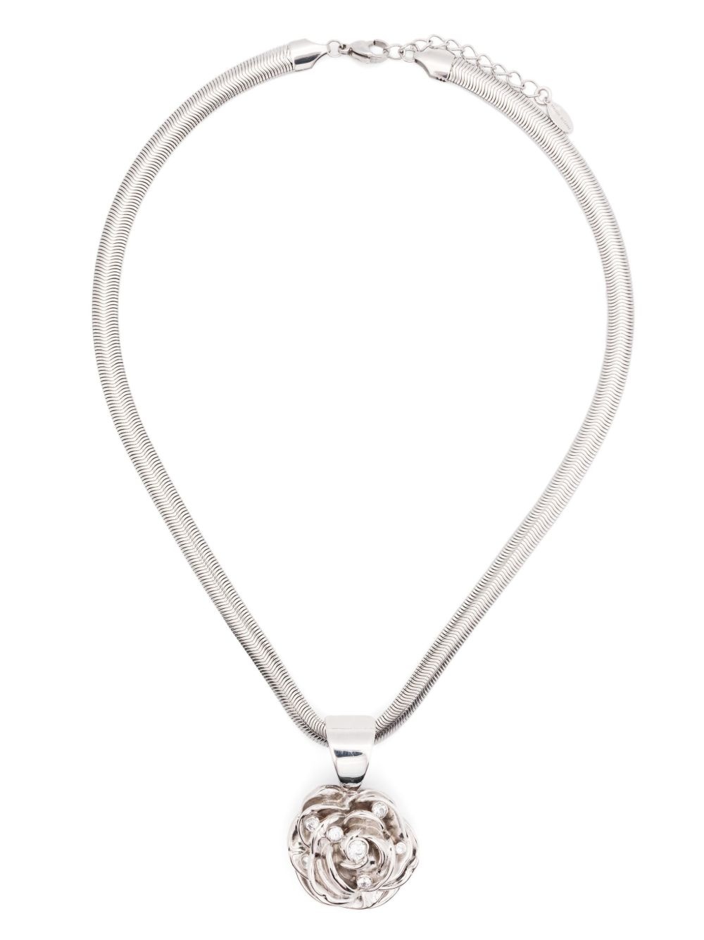rose-pendant necklace Highlights - Silver-tone - Lobster claw fastening - Snake chain - Crystal embellishment - Engraved logo Imported SIZE & FIT Model measurements Height 5 ft 9 in(1.75 m) Bust/Chest 34.64 in(88 cm) Hips 36.61 in(93 cm) Waist 26.37 in(67 cm) Measurement Length when open 17.51 in(44.5 cm) Minimum Length 16.33 in(41.5 cm) PENDANT LENGTH 1.73 in(4.4 cm) PENDANT WIDTH 1.1 in(2.8 cm) WIDTH 0.23 in(0.6 cm)