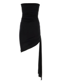 ruched mini dress Highlights - Black - Ruched detailing - Strapless - Straight hem - Strap detailing Imported Composition Viscose 91%, Elastane 9%