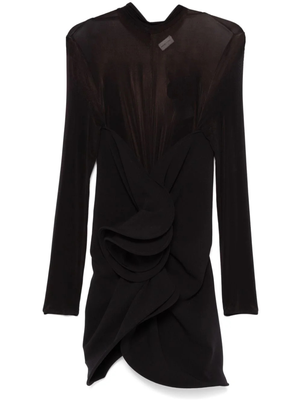 sculptural high-neck mini dress Highlights - Black - Wool blend - Stretch-design - Semi-sheer panels - Sculpted design - High neck - Concealed rear zip fastening - Draped detailing - Long sleeves - Unlined - Asymmetric hem - Thigh-length Imported Composition Wool 96%, Cupro 92%, Spandex/Elastane 8%, Elastane 4% SIZE & FIT Model measurements Height 5 ft 9 in(1.75 m) Bust/Chest 31.88 in(81 cm) Hips 34.64 in(88 cm) Waist 24.01 in(61 cm) FittingInformation Designed for a slim fit that sits just away from the body offering a close yet comfortable fit Made from a midweight stretch fabric, this piece offers elasticity and flexibility when worn Washing instructions Dry Clean Only