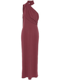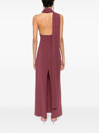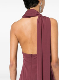 shawl-collar maxi dress Highlights - Dark purple - Stretch-design - Shawl collar - Sleeveless - Flared - Long length - Open back - Central rear vent - Rear zip fastening Imported Composition Polyamide 87%, Spandex/Elastane 13% SIZE & FIT Model measurements Height 5 ft 9 in(1.76 m) Bust/Chest 31.88 in(81 cm) Hips 35.43 in(90 cm) Waist 24.8 in(63 cm) FittingInformation Designed for a close fit at the chest and waist with a loose fit at the hip The vented hem offers movement at the rear Made from a midweight stretch fabric, this piece offers elasticity and flexibility when worn This piece fits true to size – take your usual size Washing instructions Dry Clean Only