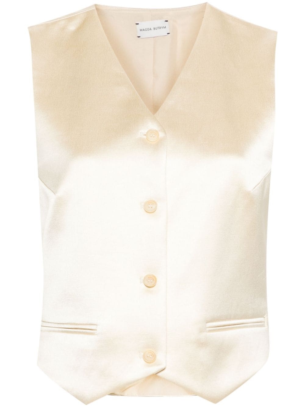 silk waistcoat Highlights - Light yellow - Silk - Satin finish - V-neck - Sleeveless - Two side jetted pockets - Adjustable strap to the rear - Full lining - Front button fastening Imported Composition Outer: Cotton 57%, Viscose 43% Lining: Silk 100% SIZE & FIT Model measurements Height 5 ft 10 in(1.77 m) Bust/Chest 33.85 in(86 cm) Hips 37 in(94 cm) Waist 26.37 in(67 cm) FittingInformation Designed for a slim fit that sits just away from the body offering a close yet comfortable fit The adjustable tabs allow for fitted preferences Made from a midweight non-stretch fabric This piece fits true to size – take your usual size