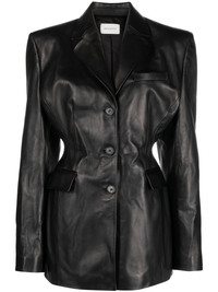 Leather hourglass blazer in black