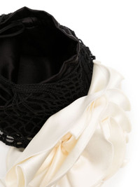 small Devana tote bag Highlights - Black/cream white - Cotton blend - Crochet knit - Calf leather bottom - Silk satin floral applique - Single top handle - Removable pouch Imported Composition Cotton 100% SIZE & FIT Measurement DEPTH 5.9 in(15 cm) HANDLE 3.93 in(10 cm) HEIGHT 6.69 in(17 cm) WIDTH 5.9 in(15 cm)