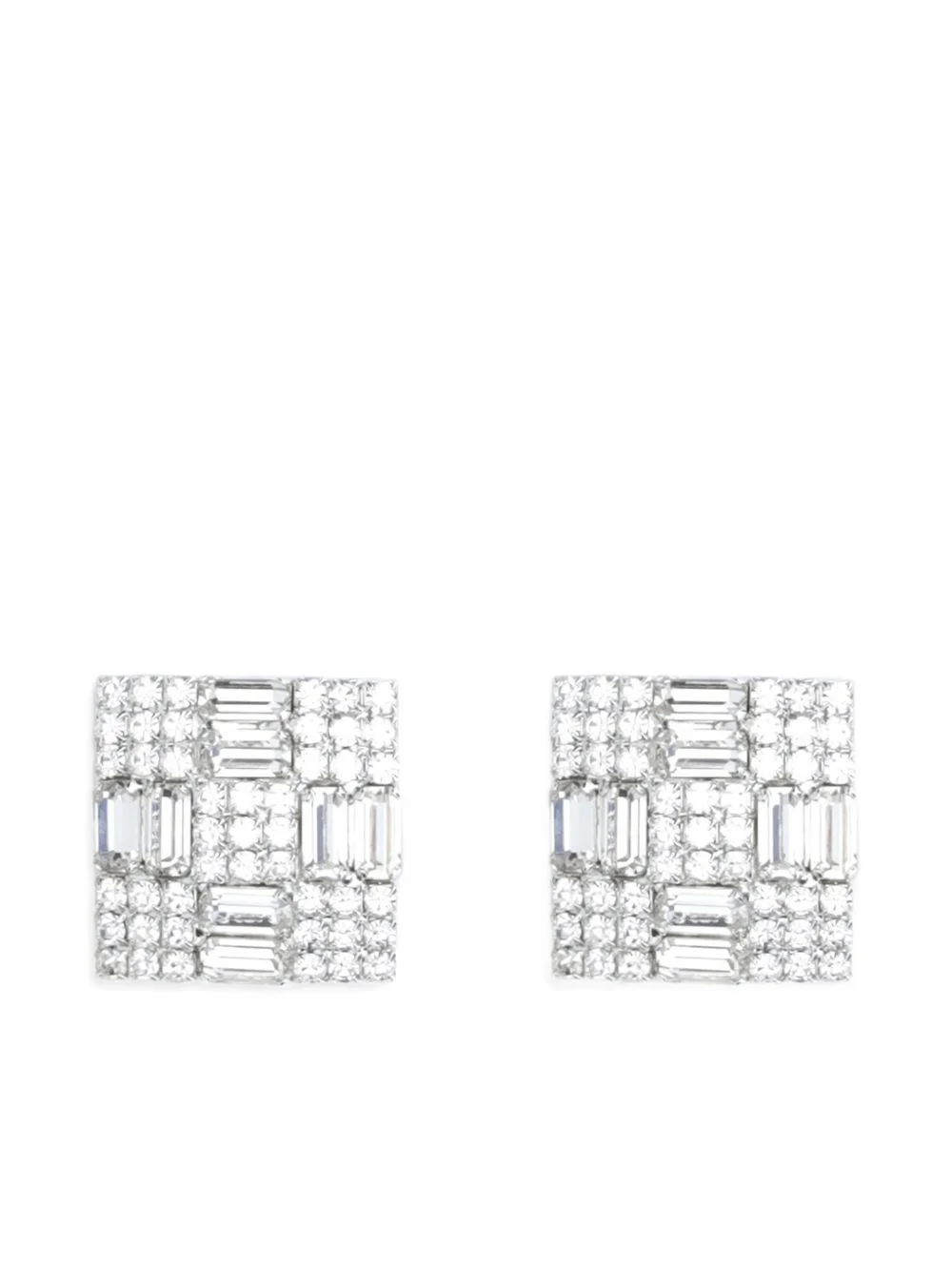 Crystal checkerboard stud earrings in silver