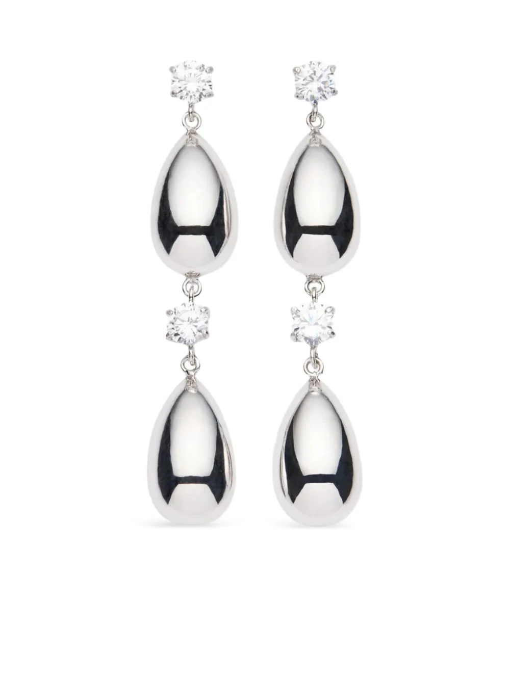 Double crystal stud teardrop earrings in silver