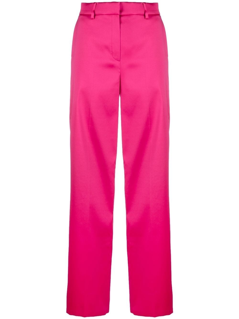 two-pocket flared tailored trousers fuchsia pink cotton belt loops concealed front fastening flared two side slit pockets Imported Composition Outer: Polyester 64%, Polyamide 32%, Spandex/Elastane 4% Lining: Silk 100% SIZE & FIT Model measurements Height 5 ft 10 in(1.79 m) Bust/Chest 33.07 in(84 cm) Hips 35.03 in(89 cm) Waist 24.4 in(62 cm) Measurement INSIDE LEG 34.64 in(88 cm) HIPS 35.03 in(89 cm) WAIST 29.92 in(76 cm) FittingInformation This piece fits true to size. We recommend you get your regular size Designed to be fitted at the waist and hips, loose over the leg Made with a mid-weight stretch fabric