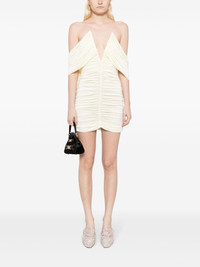 V-neck ruched minidress This minidress brings a bold edge to MAGDA BUTRYM's romanticism. The ruched silhouette echoes the label's signature style, while a wired plunging V-neck adds a daring touch. Sash details elegantly drape off the shoulders for an ethereal finish. Highlights - Cream white - Stretch-design - Ruched detailing - Plunging v-neck - Strapless - Concealed rear zip fastening - Straight hem - Thigh-length Imported Composition Outer: Viscose 95%, Elastane 5% Lining: Silk 100% SIZE & FIT Model measurements Height 5 ft 9 in(1.76 m) Bust/Chest 31.1 in(79 cm) Hips 35.03 in(89 cm) Waist 24.4 in(62 cm) FittingInformation Designed for a close fit throughout Made from a midweight stretch fabric, this piece offers elasticity and flexibility when worn This piece fits close in all sizes – take your usual size
