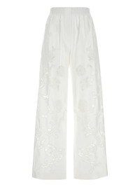 wide-leg poplin trousers Highlights - White - Elasticated waistband - Floral embroidery - Straight hem Imported Composition Cotton 75%, Polyamide 15%, Polyester 10%