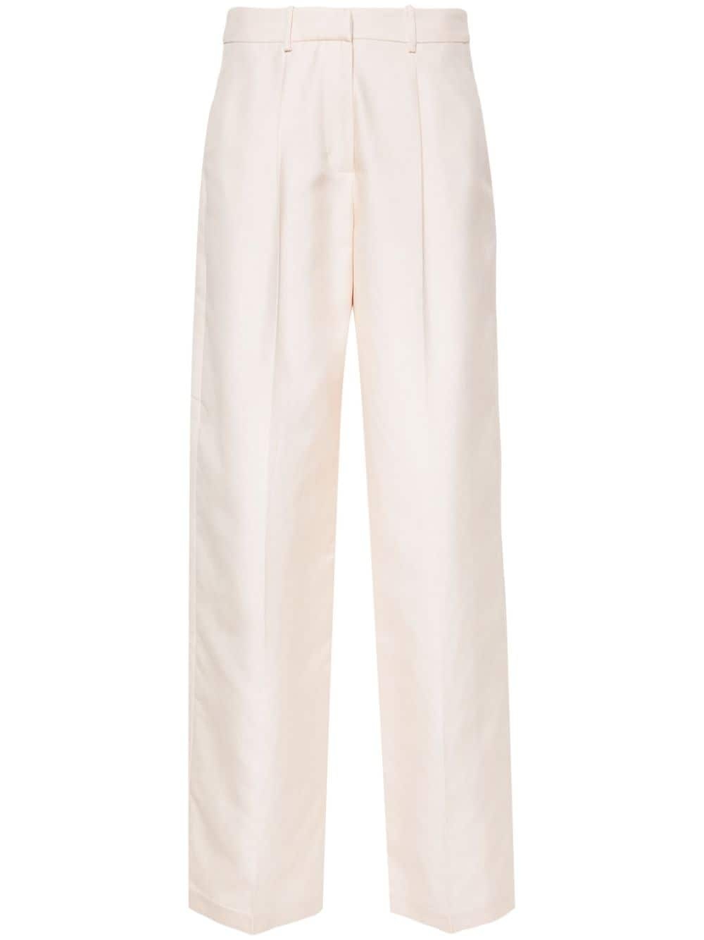 wide-leg silk trousers Highlights - Light beige - Silk - Wide leg - Concealed front button, hook and zip fastening - Belt loops - Two side slash pockets - Front pleat detailing - Pressed crease - Two rear button-fastening jetted pockets - Tailored design - Full-length Imported Composition Lining: Silk 100% Outer: Silk 100% SIZE & FIT Model measurements Height 5 ft 10 in(1.78 m) Bust/Chest 32.67 in(83 cm) Hips 35.43 in(90 cm) Waist 23.22 in(59 cm) FittingInformation Designed with a wide-leg cut, these trousers allow for a close fit at the waist and offer a loose and roomy fit over the leg Made from a midweight non-stretch fabric