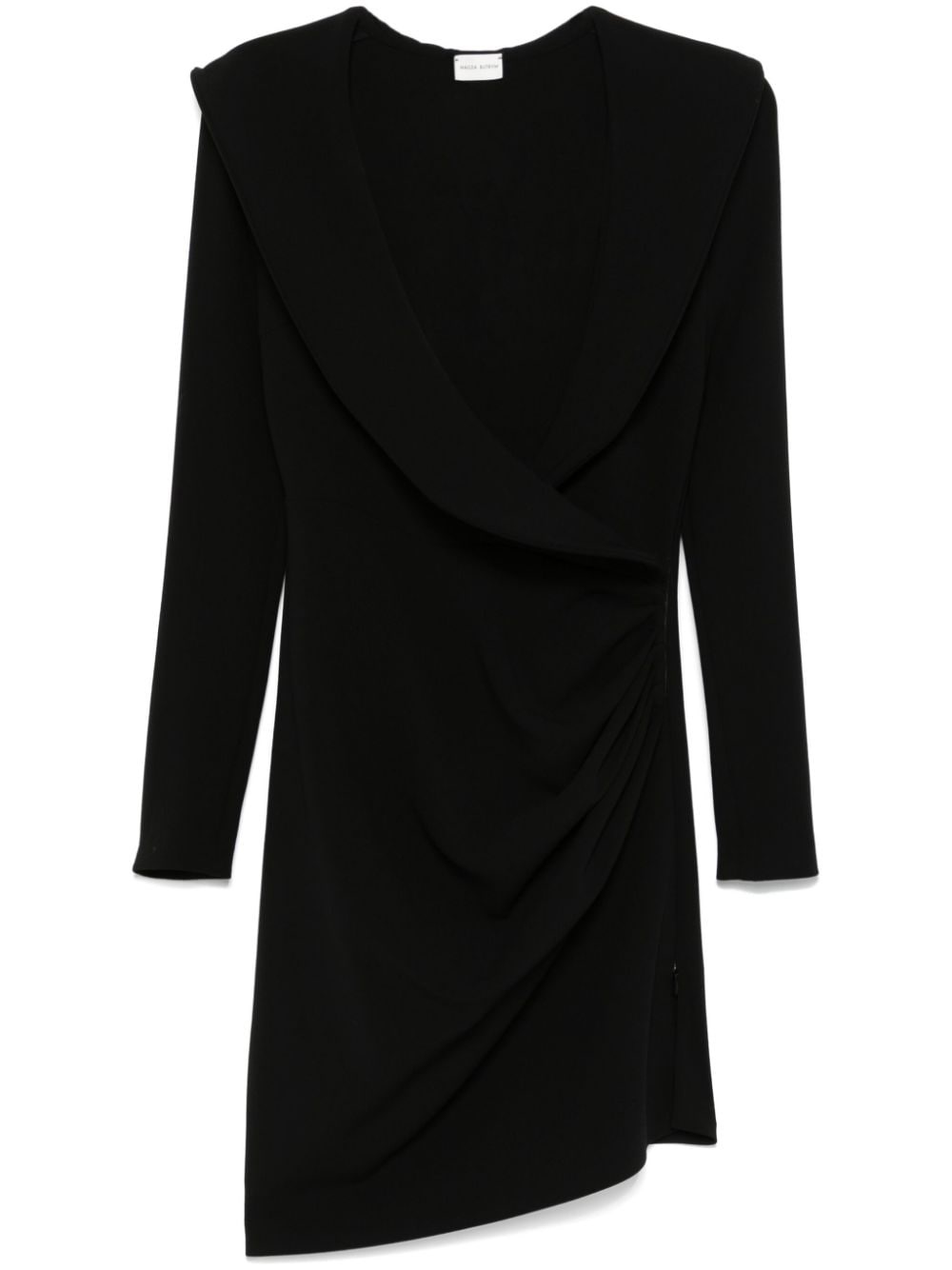 wrap-design mini dress Highlights - Black - Wool blend - Stretch-design - Wrap design - Concealed side zip fastening - Shawl lapels - Plunging v-neck - Long sleeves - Ruched detailing - Draped detailing - Unlined - Straight hem Imported Composition Outer: Wool 96%, Elastane 4% Lining: Silk 96%, Elastane 4% SIZE & FIT Model measurements Height 5 ft 9 in(1.75 m) Bust/Chest 31.88 in(81 cm) Hips 34.64 in(88 cm) Waist 24.01 in(61 cm) Measurement CHEST 33.85 in(86 cm) SLEEVE LENGTH 24.4 in(62 cm) HIPS 32.28 in(82 cm) LENGTH 38.58 in(98 cm) WAIST 27.55 in(70 cm) FittingInformation Designed for a slim fit that sits just away from the body offering a close yet comfortable fit Made from a midweight stretch fabric, this piece offers elasticity and flexibility when worn