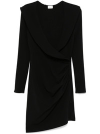 Wrap-effect draped wool-blend crepe mini dress