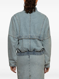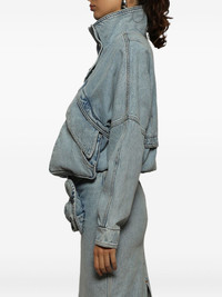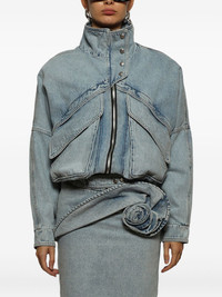 zip-up denim jacket Highlights - Light blue - High collar - Oversized flap pockets - Snap button details - Layered panel design Imported Composition Cotton 100% Washing instructions Read Manufacturer Guidelines
