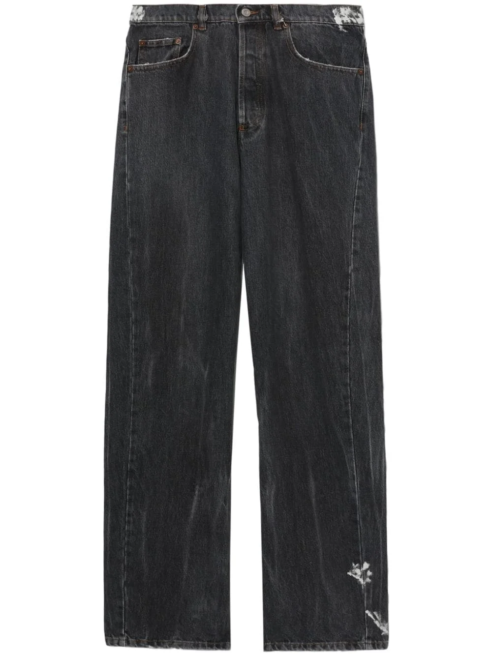 distressed straight-leg jeans Highlights - Black - Cotton - Denim - Distressed finish - Applique logo - Concealed fly and button fastening - Classic five pockets - Straight leg Made in Italy Composition Cotton 100%