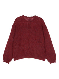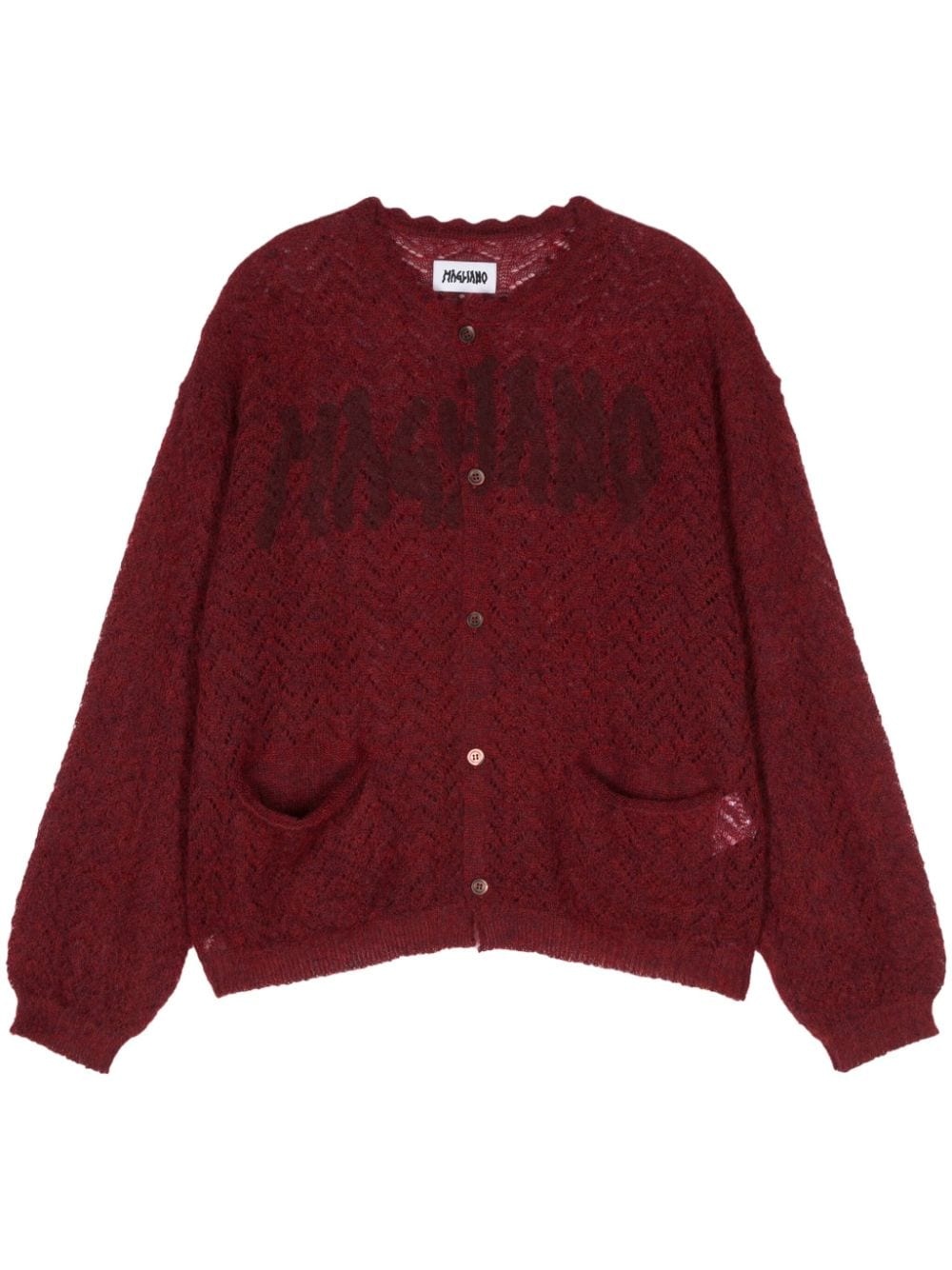 logo-detailed cardigan Highlights - Dark red - Mohair-wool blend - Crochet knit - Logo detailing at the chest - Front button fastening - Scallop collar - Long sleeves - Ribbed cuffs and hem - Two side patch pockets Made in Italy Composition Mohair 50%, Polyamide 32%, Wool 18%
