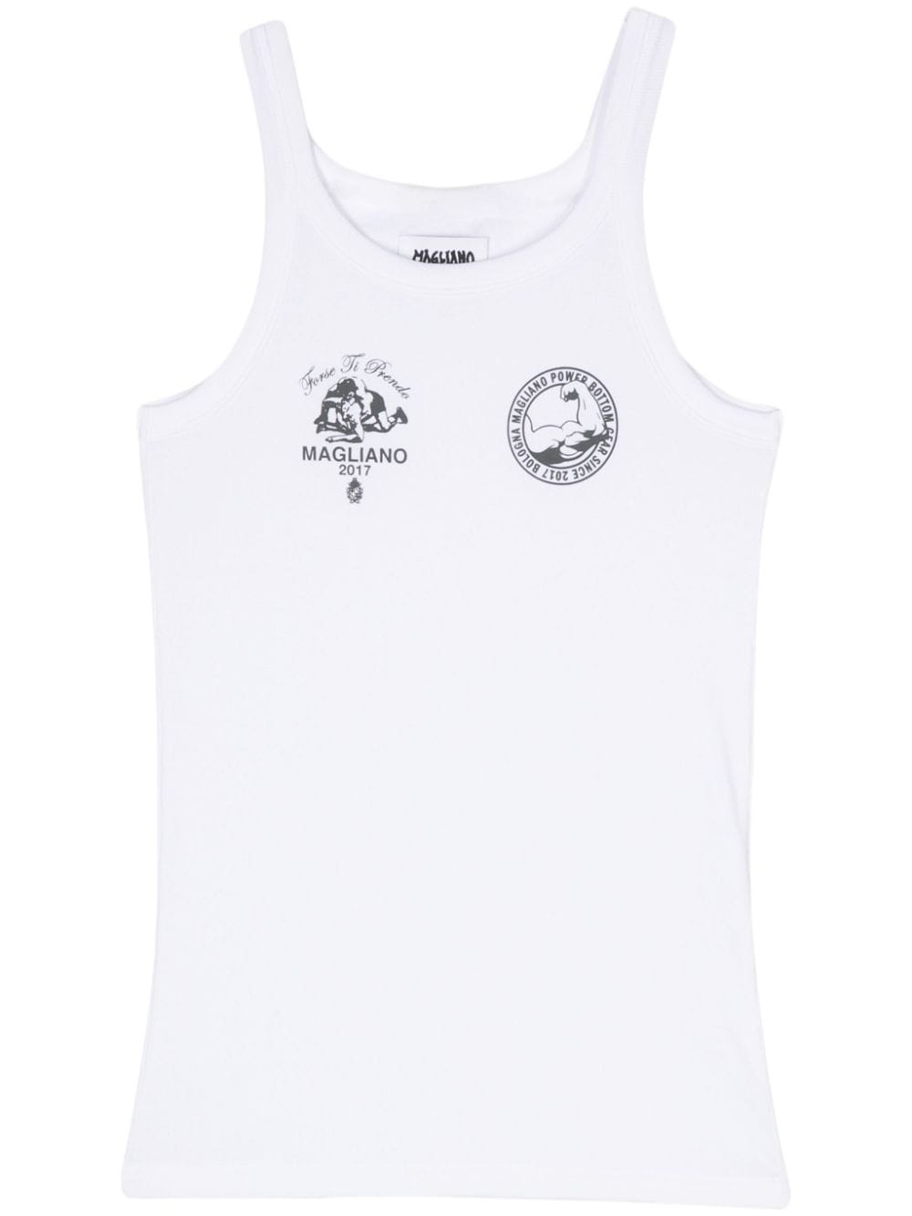 logo-print ribbed top Highlights - White - Cotton blend - Stretch-design - Fine ribbed - U-neck - Sleeveless - Logo print to the front - Straight hem Made in Italy Composition Cotton 94%, Elastane 6% Washing instructions Machine Wash