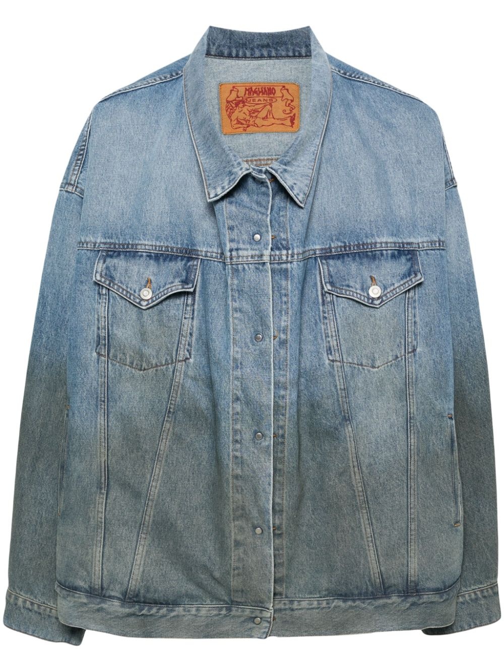 mid-wash denim jacket Highlights - Blue - Cotton - Denim - Mid-wash - Classic collar - Drop shoulder - Long sleeves - Buttoned cuffs - Two chest patch pockets - Two side welt pockets - Adjustable strap to the side and rear - Internal logo tag - Straight hem - Front button fastening Made in Italy Composition Outer: Cotton 100% Lining: Polyester 65%, Cotton 35% SIZE & FIT Model measurements Height 6 ft 2 in(1.88 m) Bust/Chest 35.03 in(89 cm) Hips 35.82 in(91 cm) Waist 27.95 in(71 cm) FittingInformation Designed for an oversized fit, offering additional room throughout Sturdy and hard-wearing, this denim piece offers no stretch This piece fits true to size – take your usual size