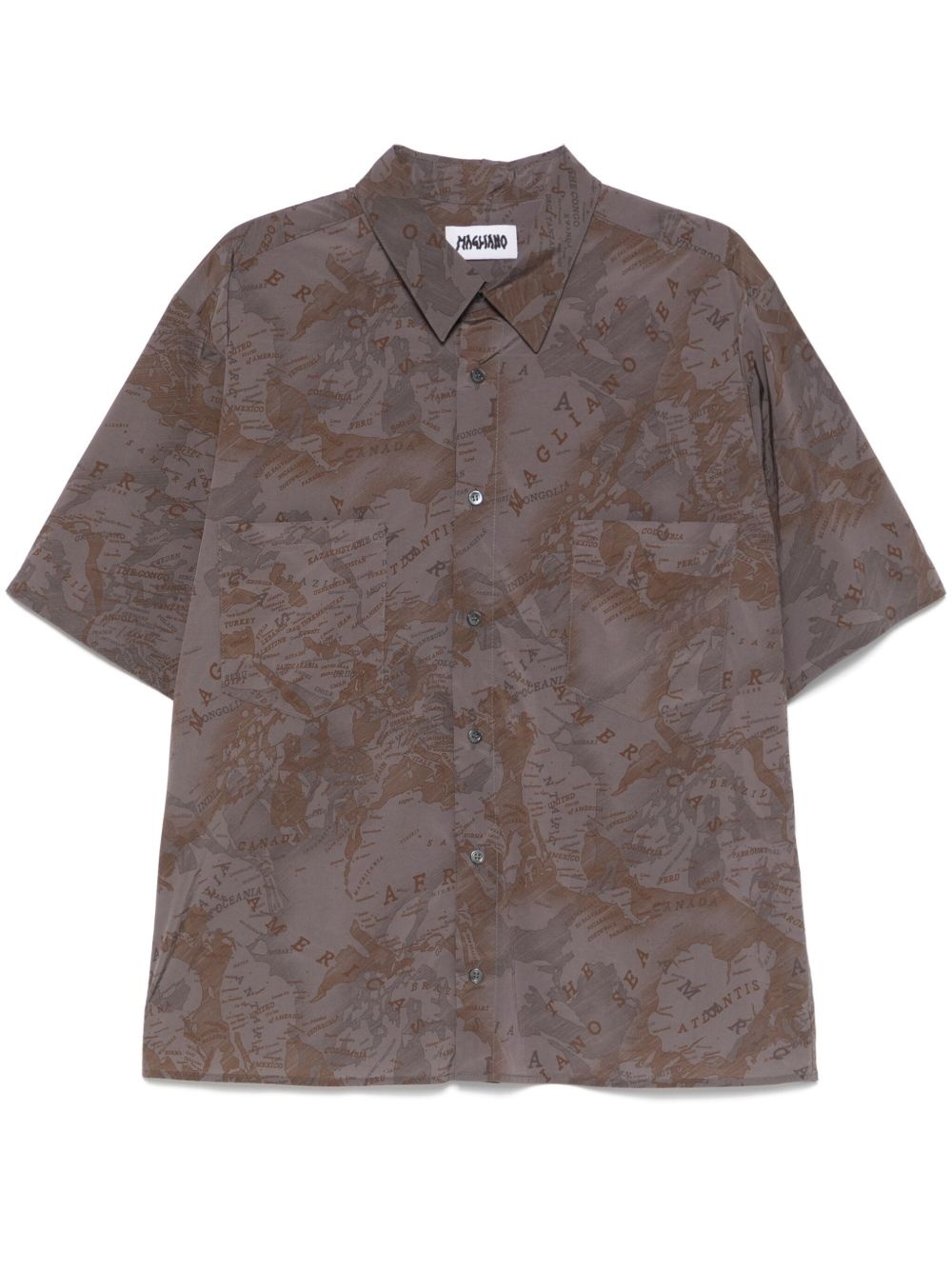 Pangea shirt Highlights - Sepia brown - Front button placket - Two chest patch pockets - All-over graphic print - Classic collar Made in Italy Composition Polyamide 96%, Elastane 4%