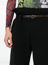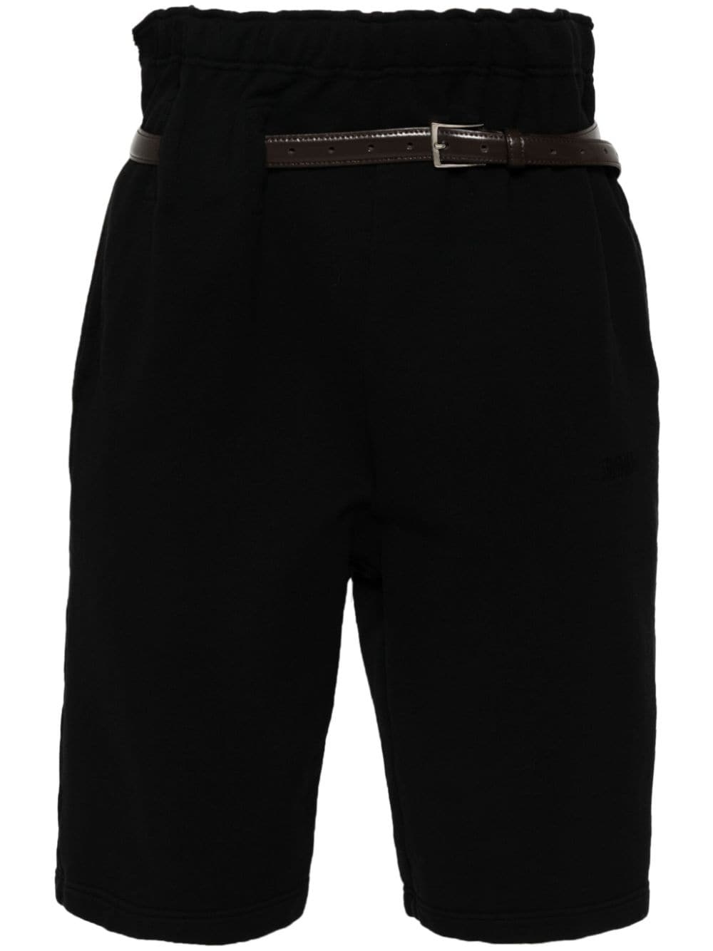 Provincia belted track shorts Highlights - Black - Cotton - Jersey texture - Cut-out detailing - Embroidered logo to the front - High-waisted - Knee-length - Slip pockets to the sides - French terry lining - Detachable and adjustable leather belt - Elasticated waistband with internal drawstring Made in Italy Composition Outer: Cotton 100%, Leather 100% Lining: Cotton 100% SIZE & FIT Model measurements Height 6 ft 2 in(1.87 m) Bust/Chest 36.41 in(92.5 cm) Hips 35.43 in(90 cm) Waist 29.52 in(75 cm) FittingInformation Designed with a wide leg, offering a loose and roomy fit Adjust this piece’s waistband to your preference using the drawstring Made from a midweight non-stretch fabric, this piece offers minimal elasticity when worn This piece fits true to size – take your usual size