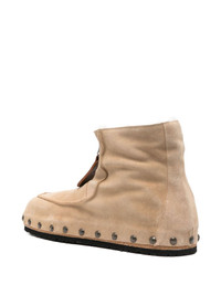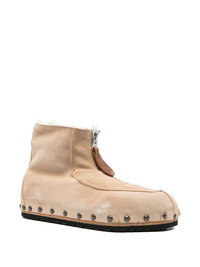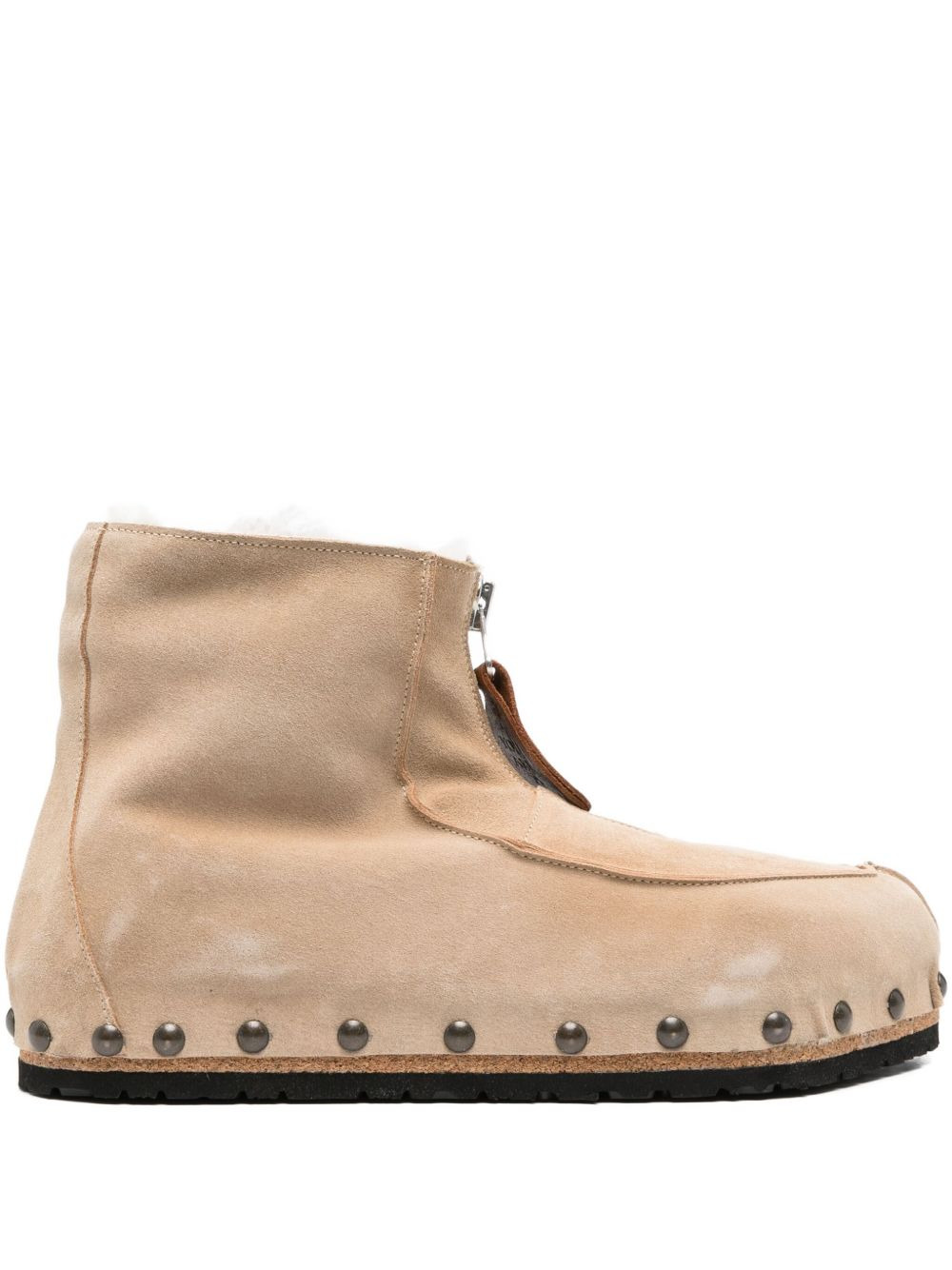 zip-front studded suede boots Highlights - Beige - Suede upper - Zip fastening - Shearling lining - Studded sole - Round toe Imported Composition Sole: Rubber 100% Outer: Calf Suede 100% Lining: Lamb Shearling 100%