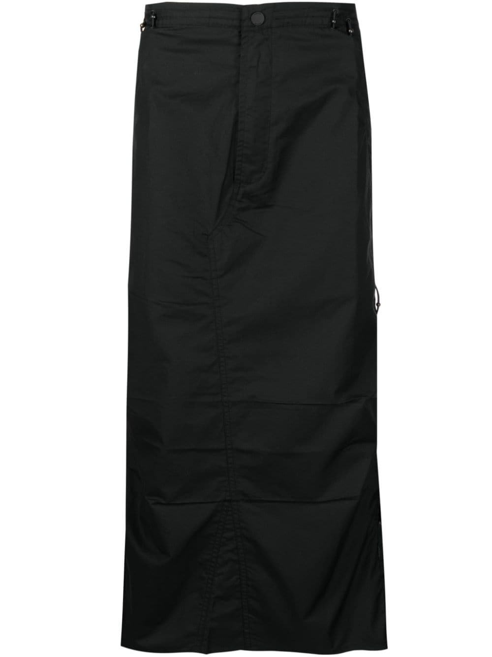 4589 Snoskirt® cargo midi skirt Highlights - Black - Organic cotton-recycled polyester blend - Water-repellent finish - Gathered detailing - Elasticated drawstring waistband - Front press-stud and zip fastening - Two side inset pockets - Front flap pocket - Rear flap pocket - Rear slit - Straight hem - Mid-length Imported Composition Organic Cotton 66%, Recycled Polyester 34% SIZE & FIT Model measurements Height 6 ft 2 in(1.87 m) Bust/Chest 34.25 in(87 cm) Hips 36.22 in(92 cm) Waist 29.52 in(75 cm) FittingInformation Designed to finish below the knee Adjust this piece’s waistband to your preference using the drawstring Made from a midweight non-stretch fabric This piece fits true to size – take your usual size