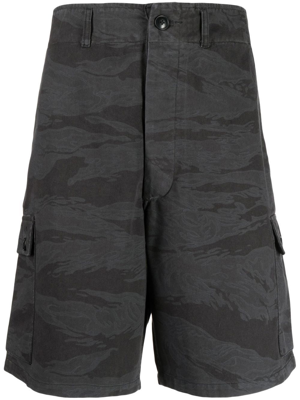 camouflage-print cargo shorts black cotton camouflage print two side cargo pockets two diagonal pockets to the sides two rear patch pockets concealed fly and button fastening belt loops above-knee length Imported Composition Cotton 100% SIZE & FIT Model measurements Height 6 ft 0 in(1.83 m) Bust/Chest 37.79 in(96 cm) Hips 37 in(94 cm) Waist 30.31 in(77 cm) FittingInformation This piece fits true to size. We recommend you get your regular size Designed for a slim fit at the waist and loose over the leg Made with a mid-weight fabric