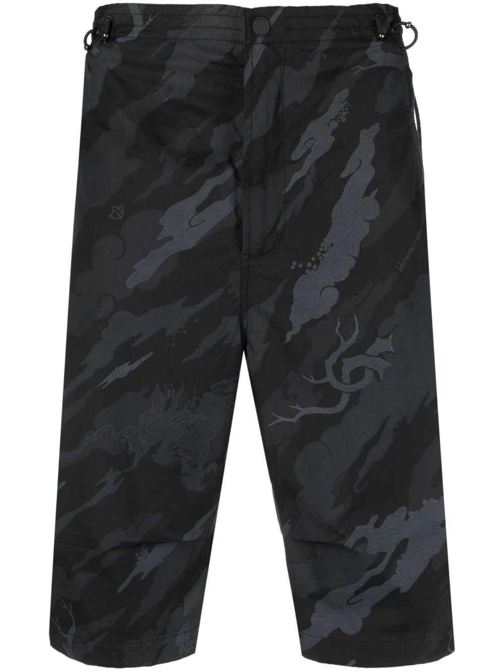 camouflage-print shorts Highlights - Smoky black - Organic cotton blend - Camouflage pattern - Pleat detailing - High-waisted - Wide leg - Elasticated drawstring waistband - Front button fastening - Internal slip pocket - Side zip-fastening pocket Imported Composition Organic Cotton 66%, Recycled Polyester 34% SIZE & FIT Model measurements Height 6 ft 1 in(1.85 m) Bust/Chest 38.58 in(98 cm) Hips 37 in(94 cm) Waist 30.31 in(77 cm) FittingInformation Designed for a straight-leg fit, offering an unrestricted and comfortable fit over the leg Adjust this piece’s waistband to your preference using the drawstring Made from a midweight non-stretch fabric This piece fits true to size – take your usual size