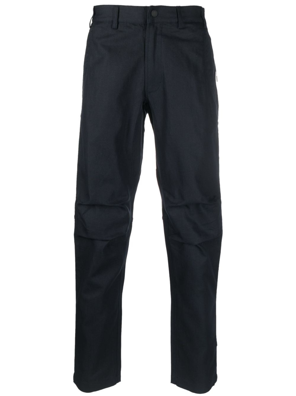 logo-patch straight-leg trousers Highlights - Navy blue - Cotton-hemp blend - Logo patch to the rear - Low-rise - Belt loops - Front button and zip fastening - Two side inset pockets - Two rear flap pockets - Straight leg Imported Composition Cotton 63%, Hemp 37% SIZE & FIT Model measurements Height 6 ft 2 in(1.87 m) Bust/Chest 36.41 in(92.5 cm) Hips 37 in(94 cm) Waist 29.52 in(75 cm) FittingInformation Designed for a tapered leg, offering a loose unrestricted fit over the leg with a closer fit towards the ankle The partially elasticated waistband offers increased movement and comfort at the waist Made from a midweight non-stretch fabric This piece fits true to size – take your usual size